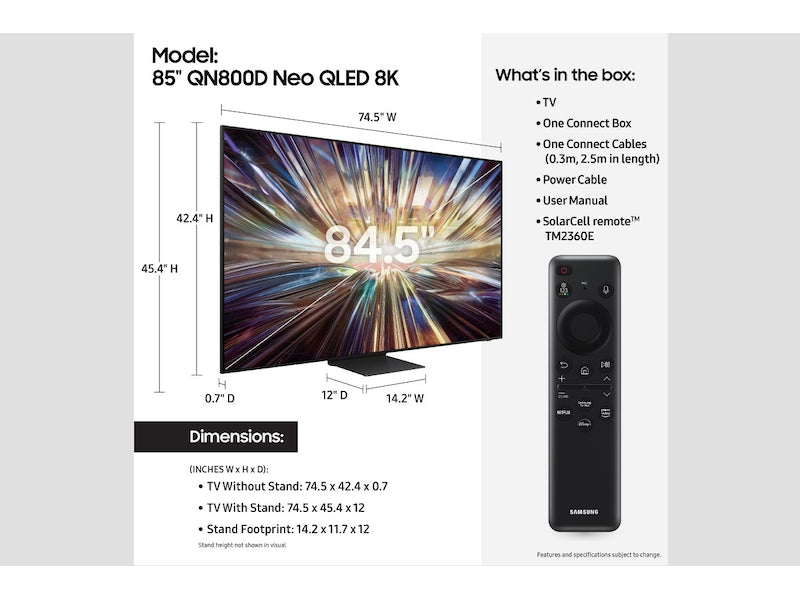 Class Samsung Neo QLED 4K QN95D Immersive 4K Quantum ProcessorEnhance your viewing experience with Samsung’s powerful 4K Quantum Processor, delivering stunning picture quality and lifelike visuals. Quantum Matrix TechnologyExperience deeper contrasts and brighter highlights with Quantum Mini LEDs, ensuring vivid colors and details in every scene. Neo Quantum HDREnjoy vibrant HDR content with incredible brightness…