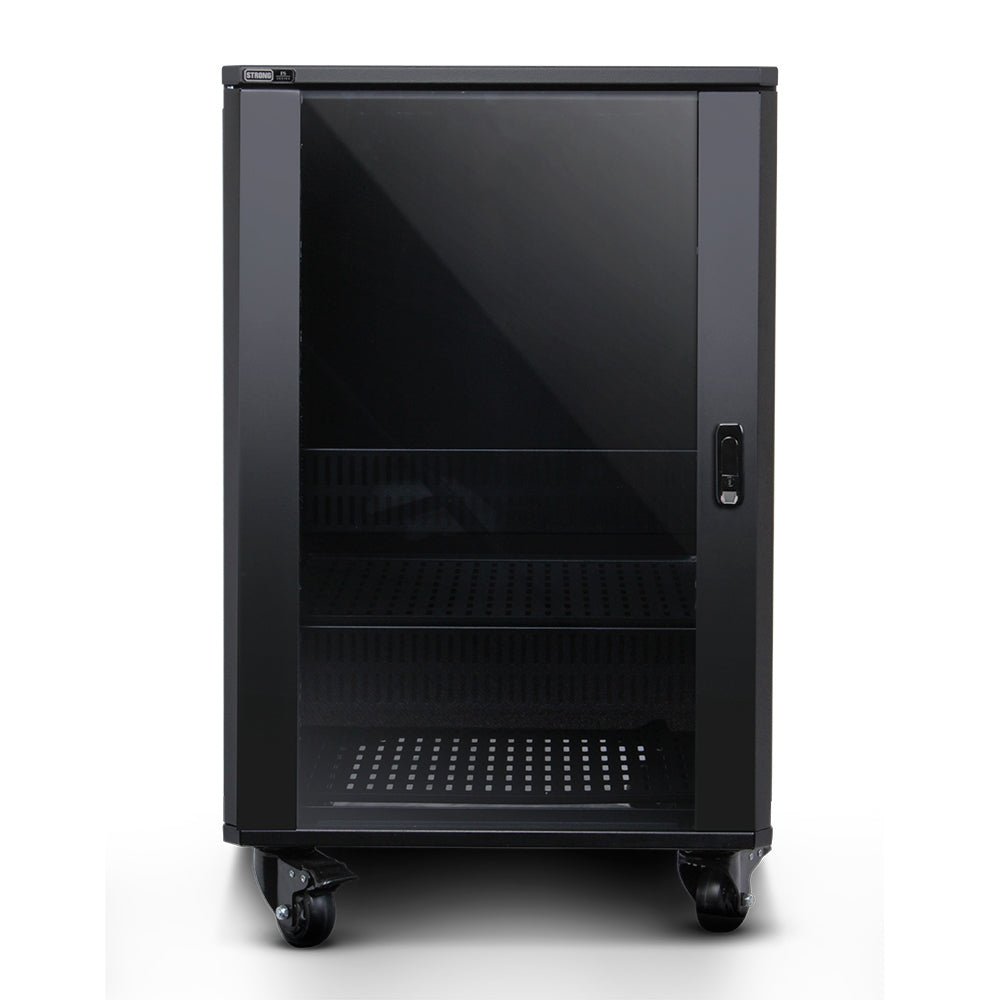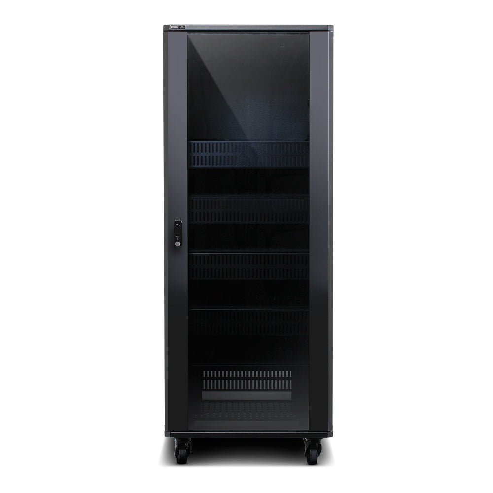 The rack arrives fully assembled. No confusing instructions. No wasted time. Just unbox, position, and load your gear. Removable panels, a reversible smoked glass door, and tamper-resistant locking make servicing straightforward without compromising security.