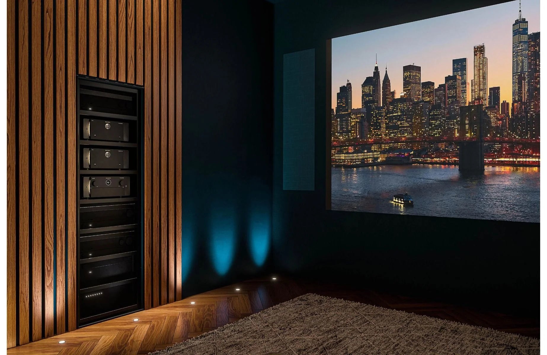 Experience true 4K clarity with the JVC DLA NZ700 projector and Stewart Filmscreen Balon. Hear every detail with Focal 300 in-wall and ceiling speakers, while SVS subwoofers bring deep, distortion-free bass that fills the room.