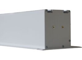 The aluminum housing of the screen is robust and designed with a sleek white finish, contributing to both its durability and its visual appeal. The moisture resistance of the housing material is a thoughtful addition, ensuring the longevity of the screen in various environmental conditions.
