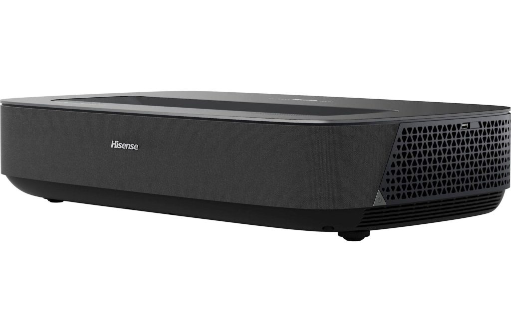 Unveiling the Hisense PL1 Laser Cinema from its packaging, you’re introduced to a sleek, compact design that exudes sophistication. The luxurious finish hints at the premium quality you’re about to witness. Setting up is a breeze; with its ultra short-throw technology, this projector fits flexibly into your living space, casting an 80 to 120-inch image from mere inches away. No need for ceiling mounts or complicated wiring – just place it near the wall, and you’re ready to go.