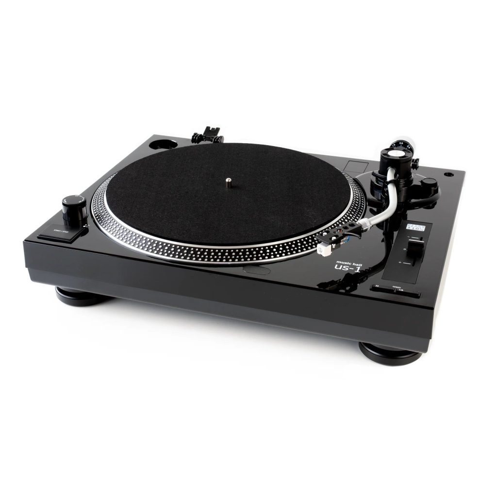 The Music Hall US-1 Turntable features a modern, minimalist aesthetic that enhances any audio setup. Its clean lines and stylish finish make it a perfect fit for contemporary spaces.