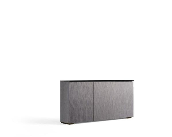 Design DescriptionThe light look and feel of tall grasses is finely set in a vertical textured pattern, Alpi gray oak with black glass top and black feet work in unison, creating the cabinet’s hi-tech facade.