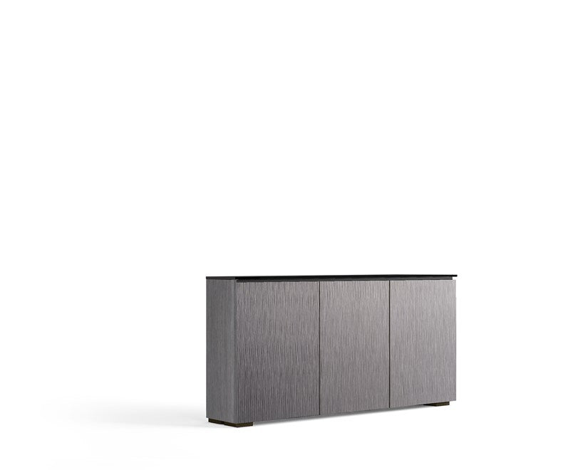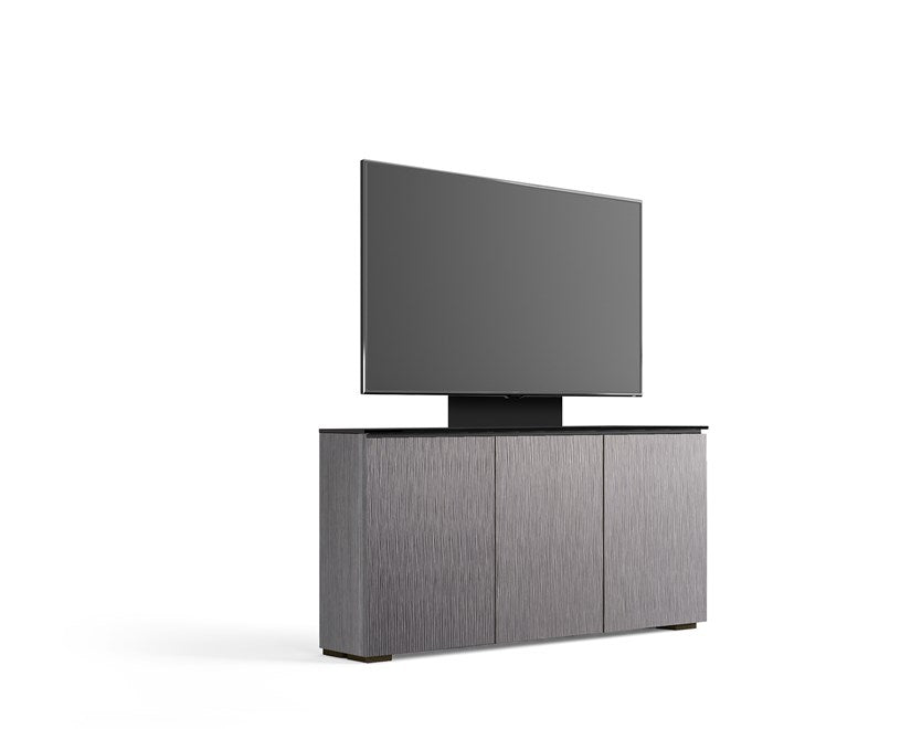 Crafted in the heart of Virginia, USA, the Chameleon 337 showcases the fine American craftsmanship inherent in every Salamander Designs piece. With a sleek finish of Alpi gray oak complemented by a black glass top and black feet, this audio cabinet elevates the aesthetic of any room. The vertical textured pattern on the doors exudes a sense of refined elegance, creating a hi-tech facade that’s more than just a storage solution—it’s a statement.