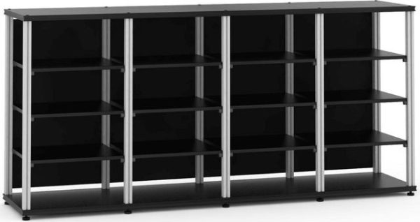Crafted with the finest materials, the Synergy Quad 40 stands as a testament to durability and style. The wood construction, complemented by anodized aluminum posts, offers a robust framework that promises longevity. The beauty of this cabinet is not only in its strength but also in its sleek modern black look with silver accents, ensuring it fits seamlessly into any decor.