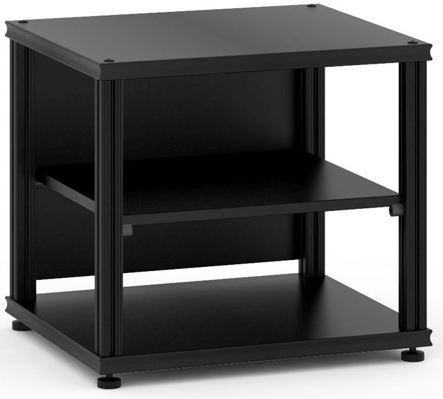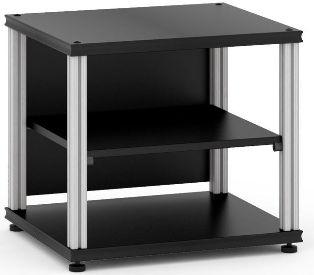 Constructed from a blend of wood and aluminum, the Synergy Single 20 boasts a robust build quality that is designed to last. The choice of finishes, from sleek black to the rich hues of dark cherry, ensures that this cabinet will complement any decor. Its solid top can bear up to 150 lbs, making it perfect for TVs up to 40 inches or as a sturdy base for your cherished audio equipment.