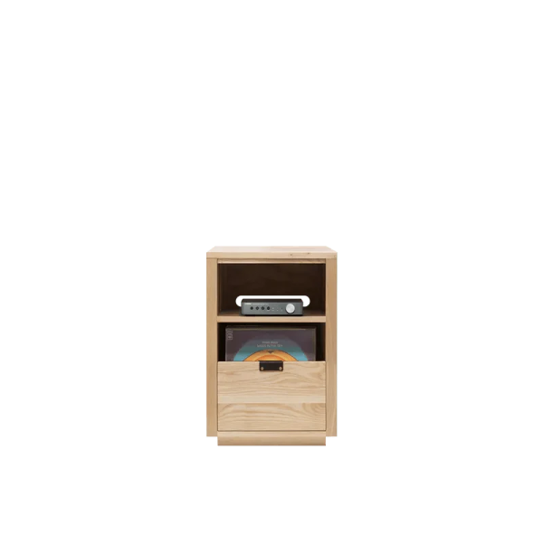 - Drawers: Each drawer is constructed with Symbol’s exposed English dovetail joinery and utilizes German-made full-extension, soft-close drawer slides. Each drawer holds up to 75 LPs.