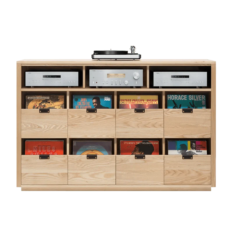 - Audio Equipment Shelves: Our equipment shelves are sized to fit most gear on the market and offer convenient access to your records below. Passive ventilation and cable management keep your components cool and organized.