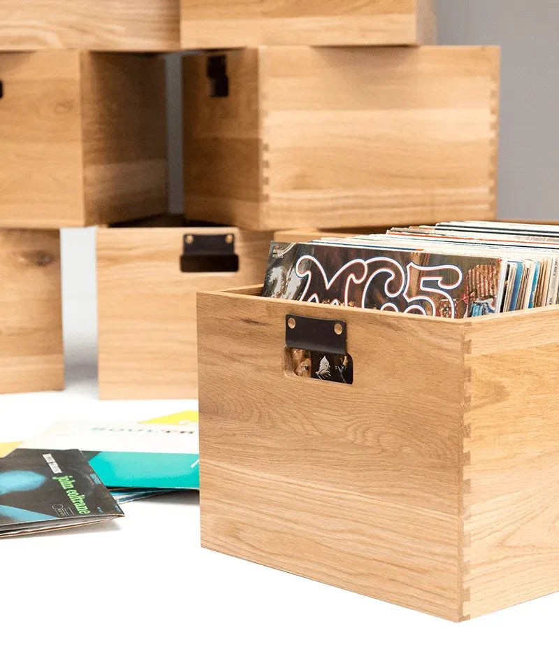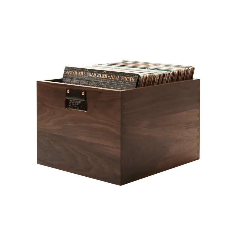 A handcrafted vinyl storage crate designed to keep your records organized, accessible, and part of a clean, intentional setup.