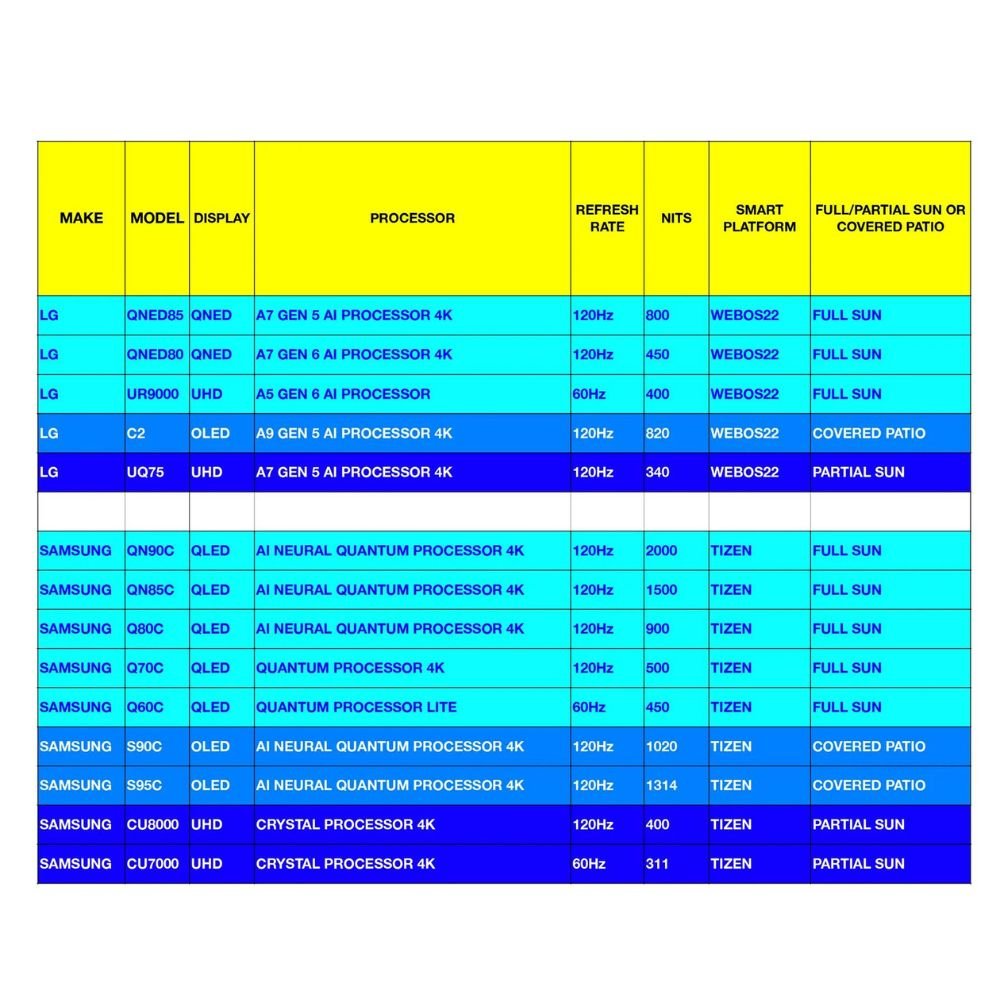 The Titan Partial Sun UHD 60Hz LG UQ75 is more than just an outdoor TV—it’s an invitation to elevate your lifestyle. It’s a commitment to enjoying every moment to its fullest, whether you’re soaking up the sun or basking in the glow of your favorite show. With the Titan, you’re not just buying a TV; you’re embracing a new way to experience the world from the comfort of your backyard.
